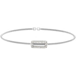 Rhodium Finish Sterling Silver Cable Cuff Bracelet with Simulated Diamond Open Rectangle