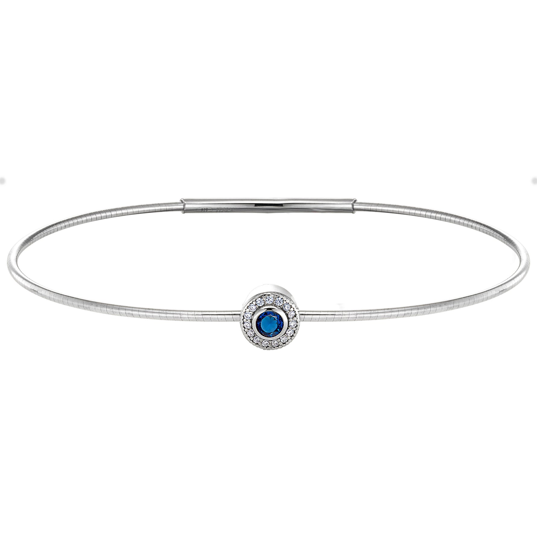 Platinum Finish Sterling Silver Round Simulated Sapphire Birth Gem Bracelet with Simulated Diamonds