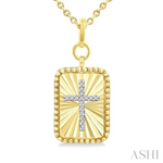 Gold Vermeil Rectangular Shape Fluted Medallion Diamond Pendant .05 Ctw Latin Cross Round Cut Diamond Rectangular Fluted Medallion Pendant With Chain in Yellow Gold Vermeil Chain: Oval Link Chain 3.10 MM in 18 Inches with Lobster Lock