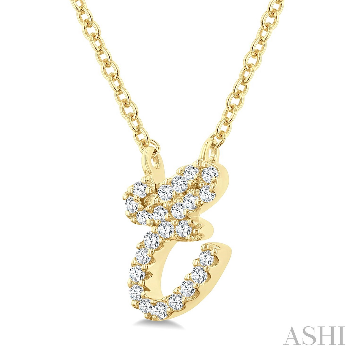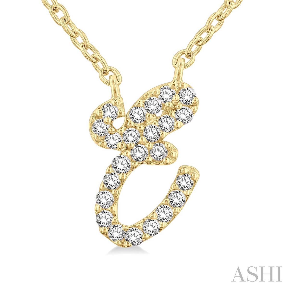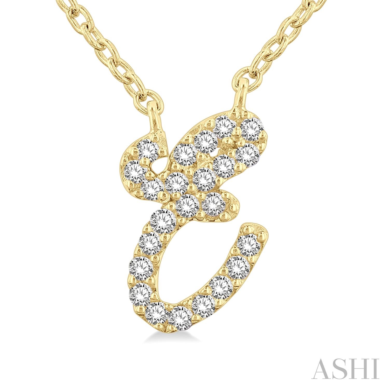 10k Yellow Gold 1/20 Ctw Initial 'E' Round cut Diamond Pendant With Chain