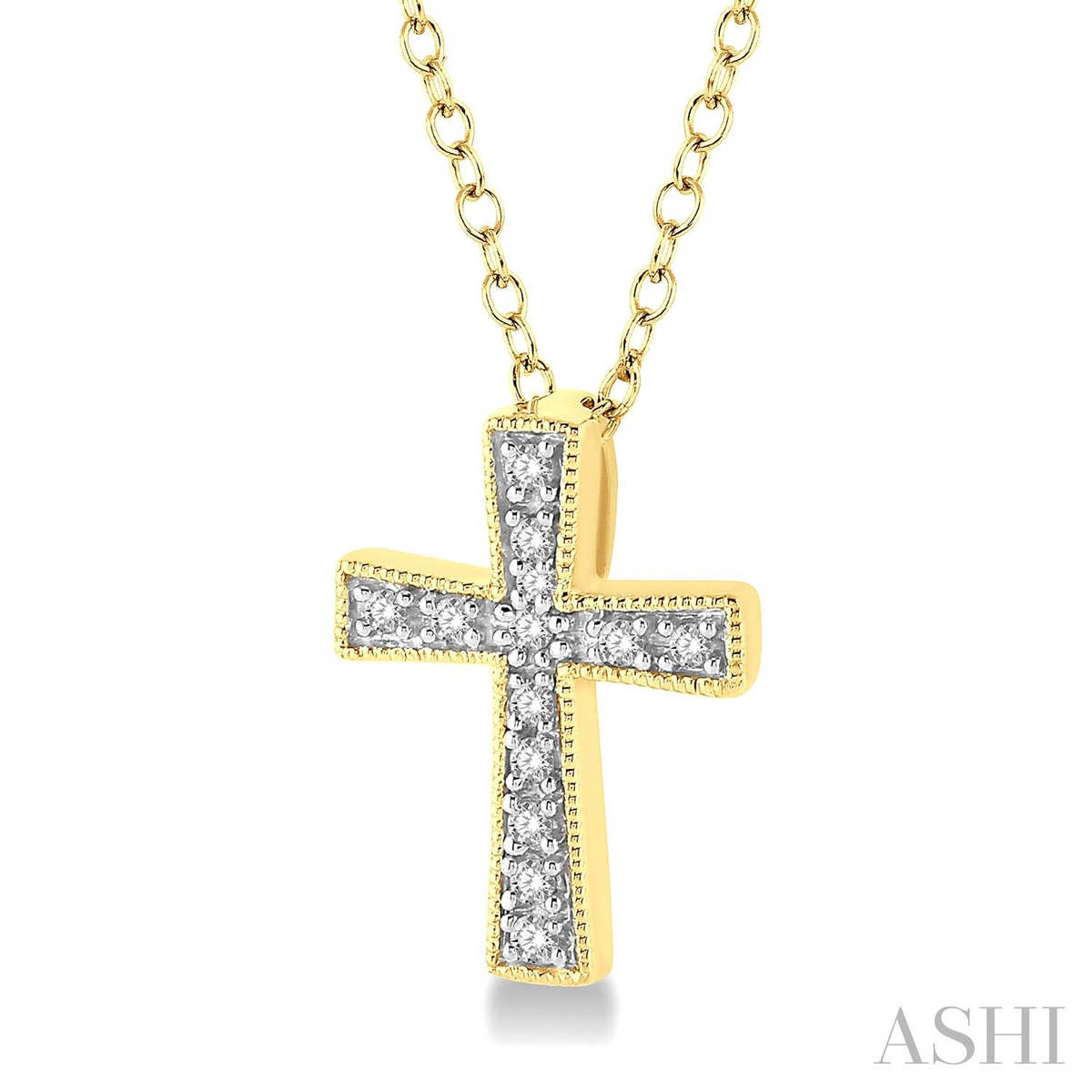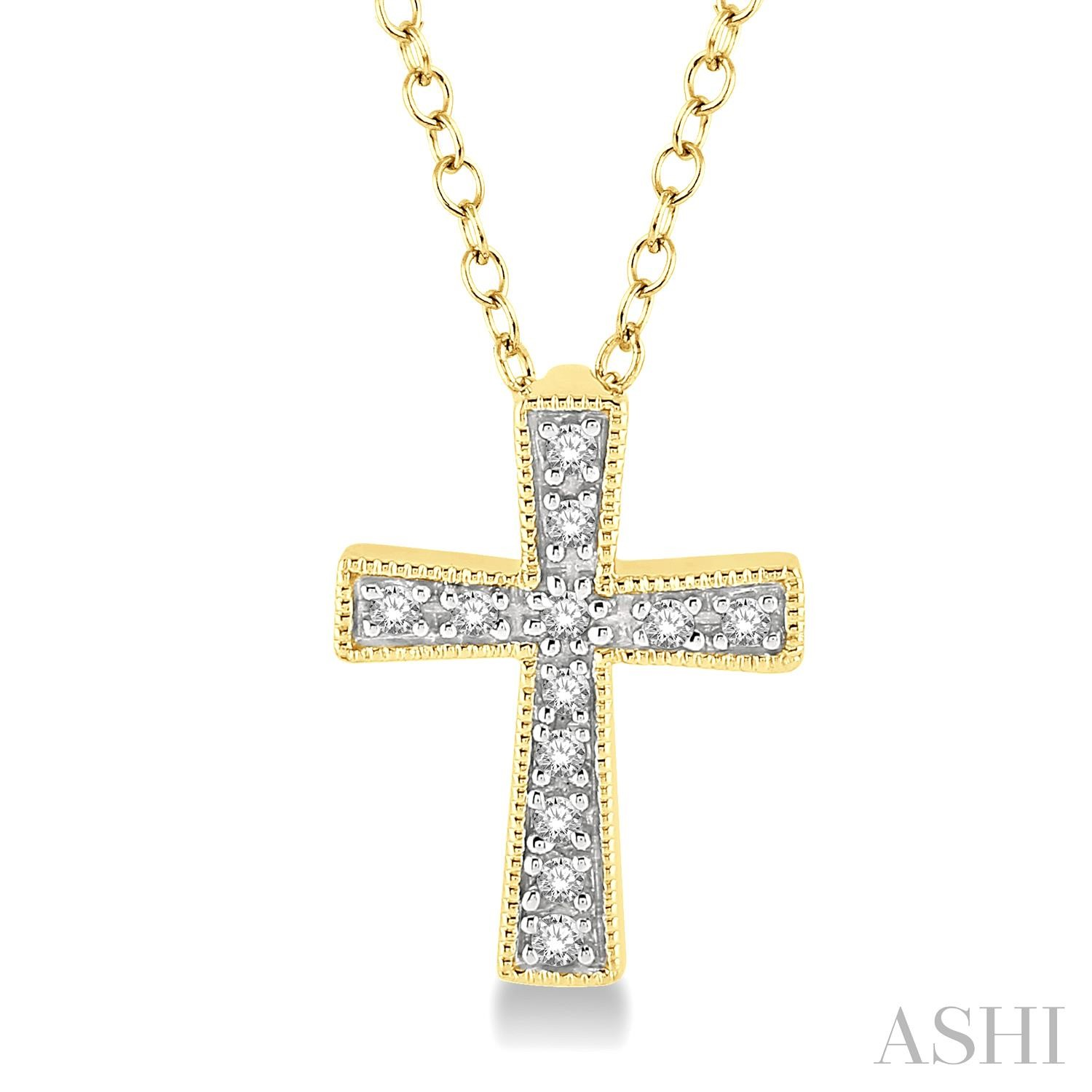 .05 Ctw Cross Round Cut Diamond Fashion Pendant With Chain in Yellow Gold Vermeil