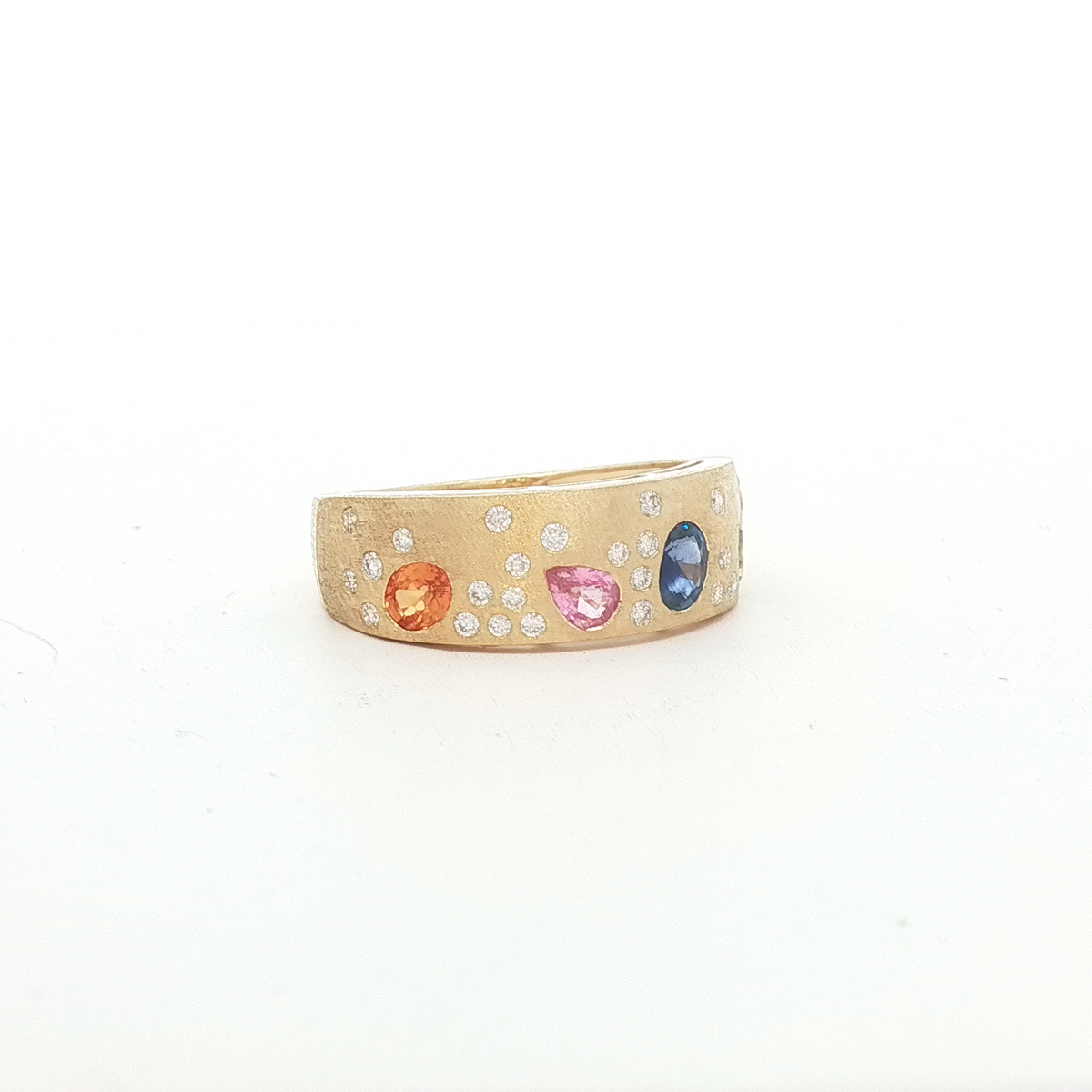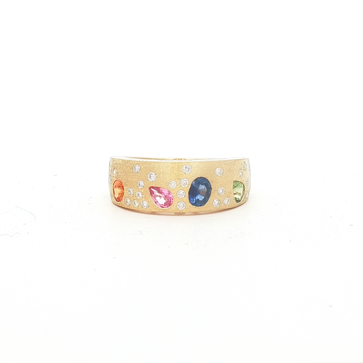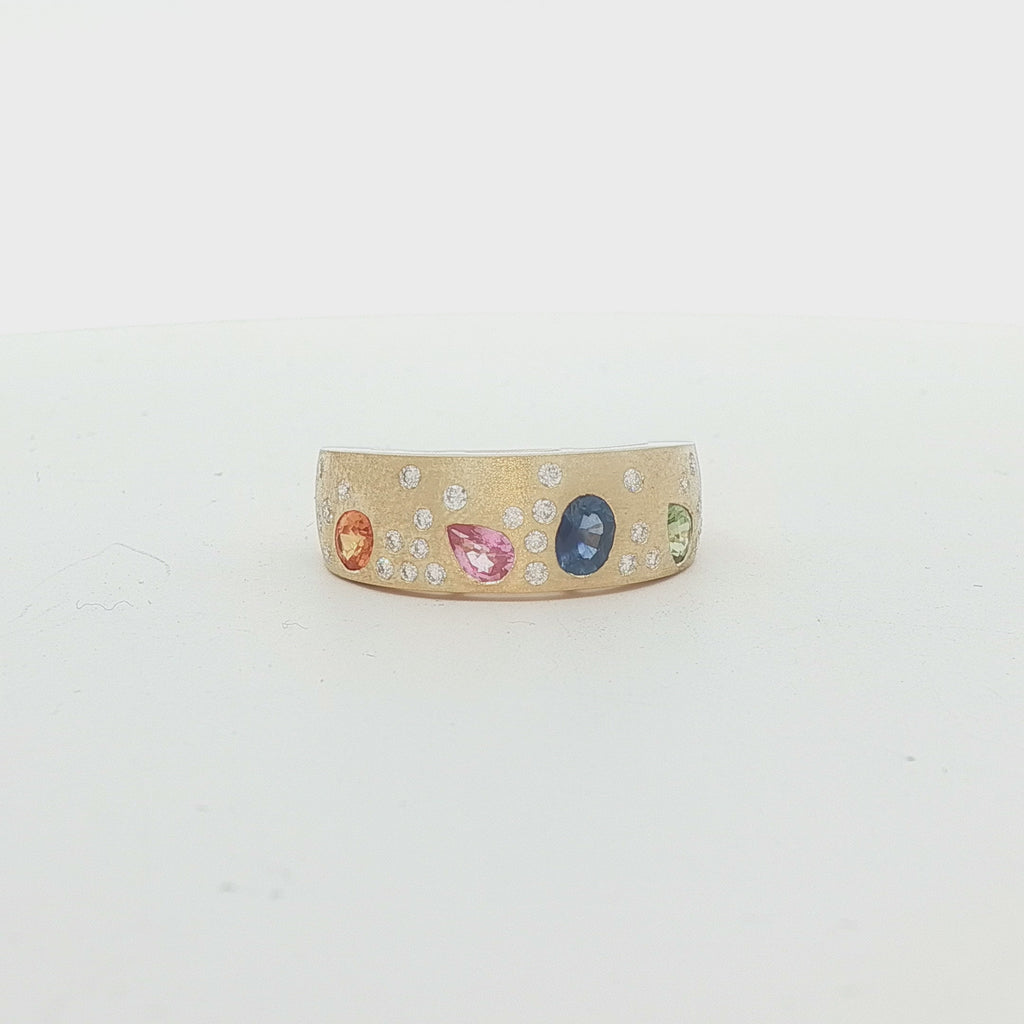 14K Yellow Gold Diamond and Multi-Color Sapphire Ring Diamond - .20 CTW Multi-Color - .88 CT