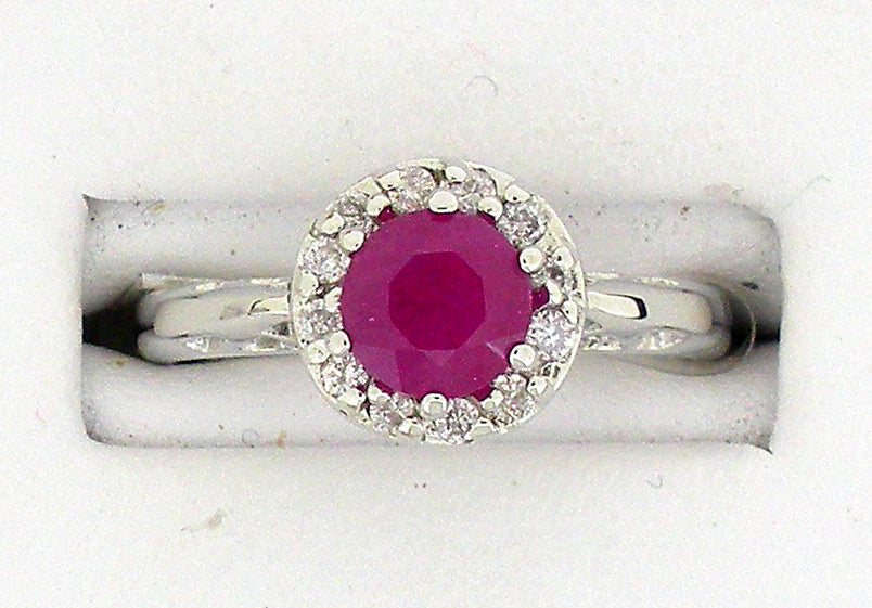 14kt WG RD Ruby /.18 CTW Dia Ring