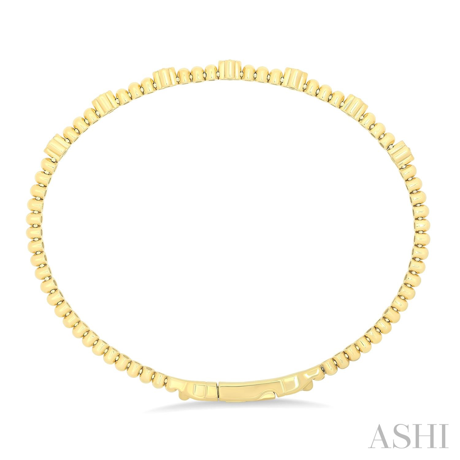 Bead Clover Diamond Fashion Flex Bangle 1/6 Ctw Round Cut Diamond Clover Bead Fashion Flex Bangle in 10K Yellow Gold Diamond Weight: 0.14 Ct