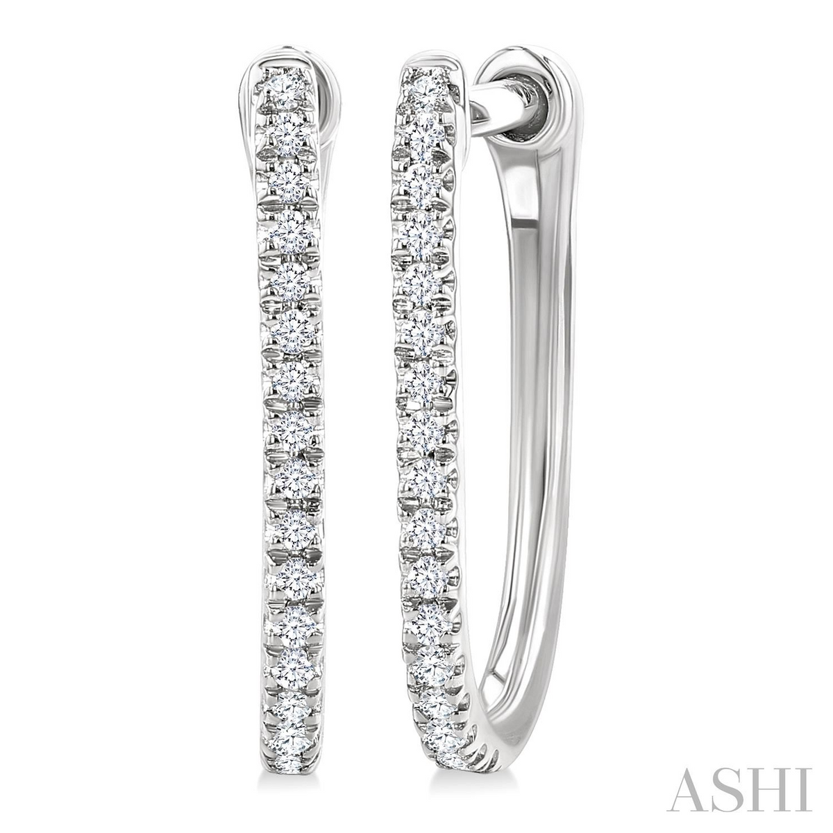 Diamond Hoop Earrings 1/10 Ctw Round Cut Diamond Fashion Hoop Earring in 10K White Gold Total Diamond Weight (Appx.): 0.10 Ct