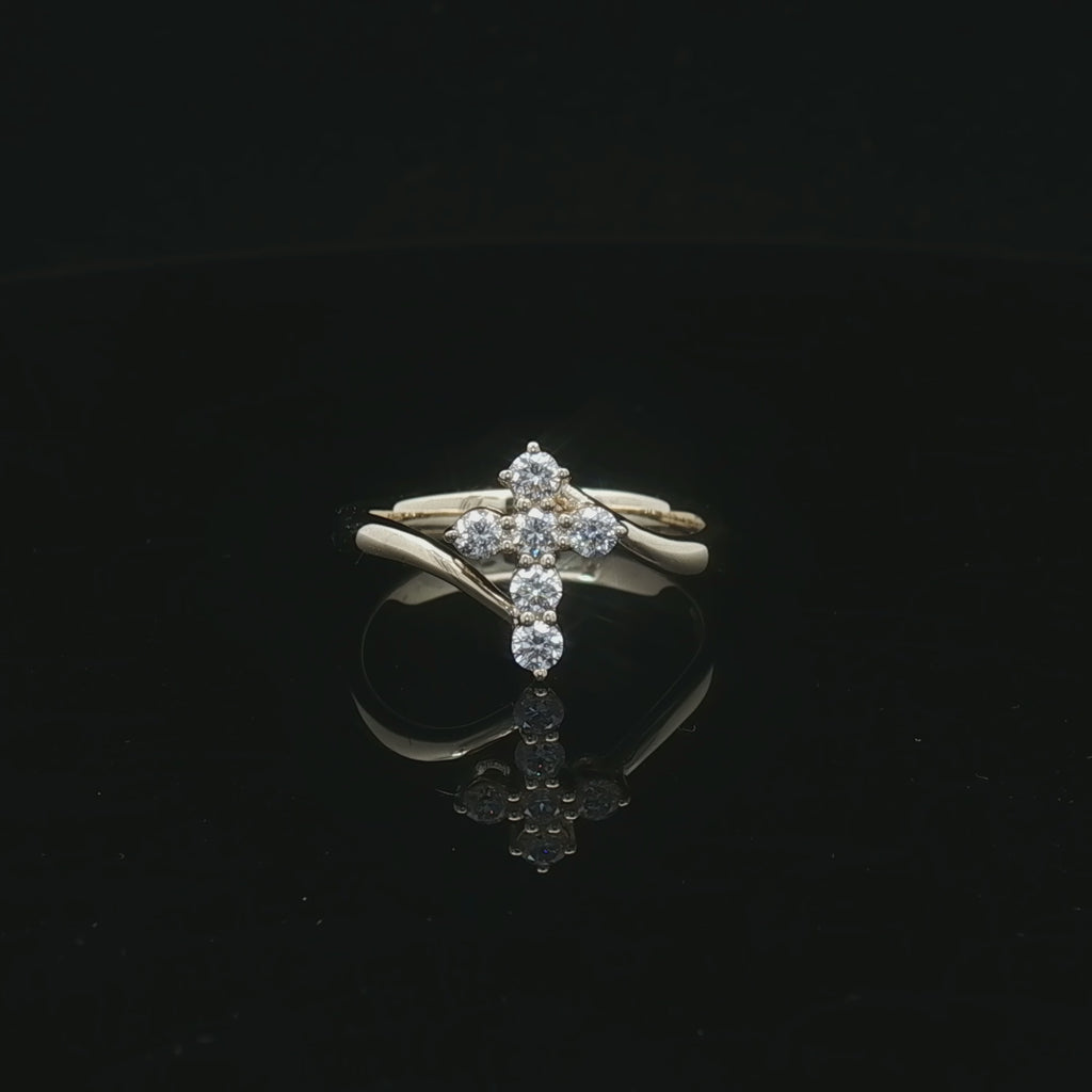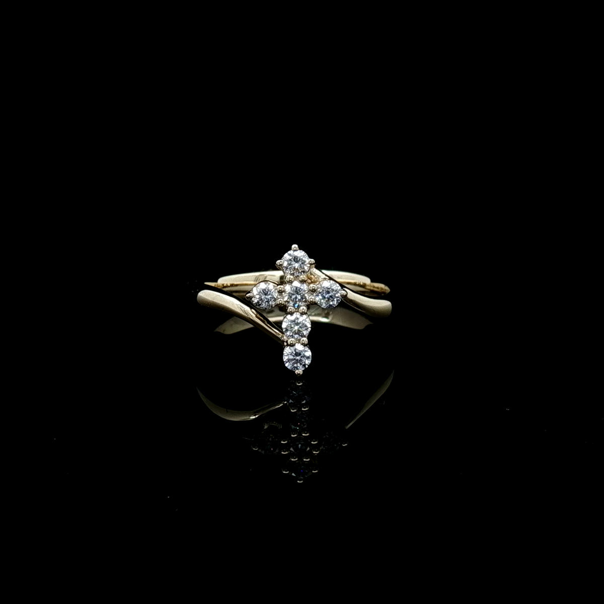 14K Yellow Gold 0.33ctw Diamond Cross Ring Ring Size: 7