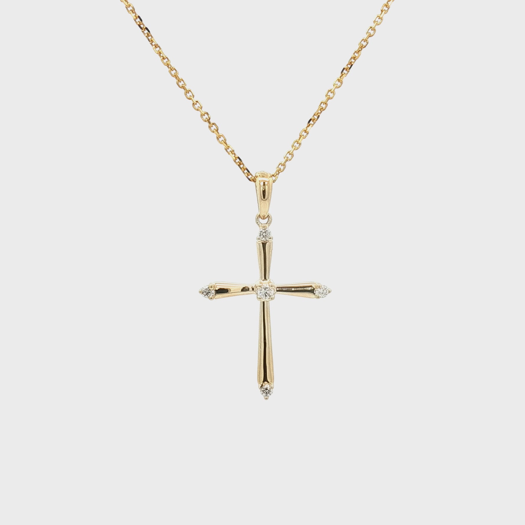 14K Yellow Gold 5 Round 0.10ct Diamond Cross Pendant *Chain Not Included (See Item Number: 430-03039)