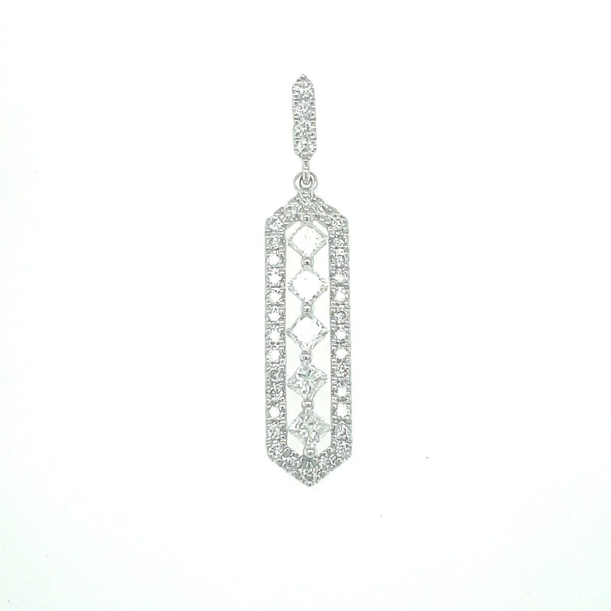 14k White Gold 0.49ctw Diamond Vertical Bar Pendant *Does Not Include Chain