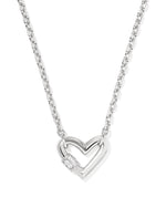 Kendra Scott Emery Heart Short Pendant Necklace Silver White CZ