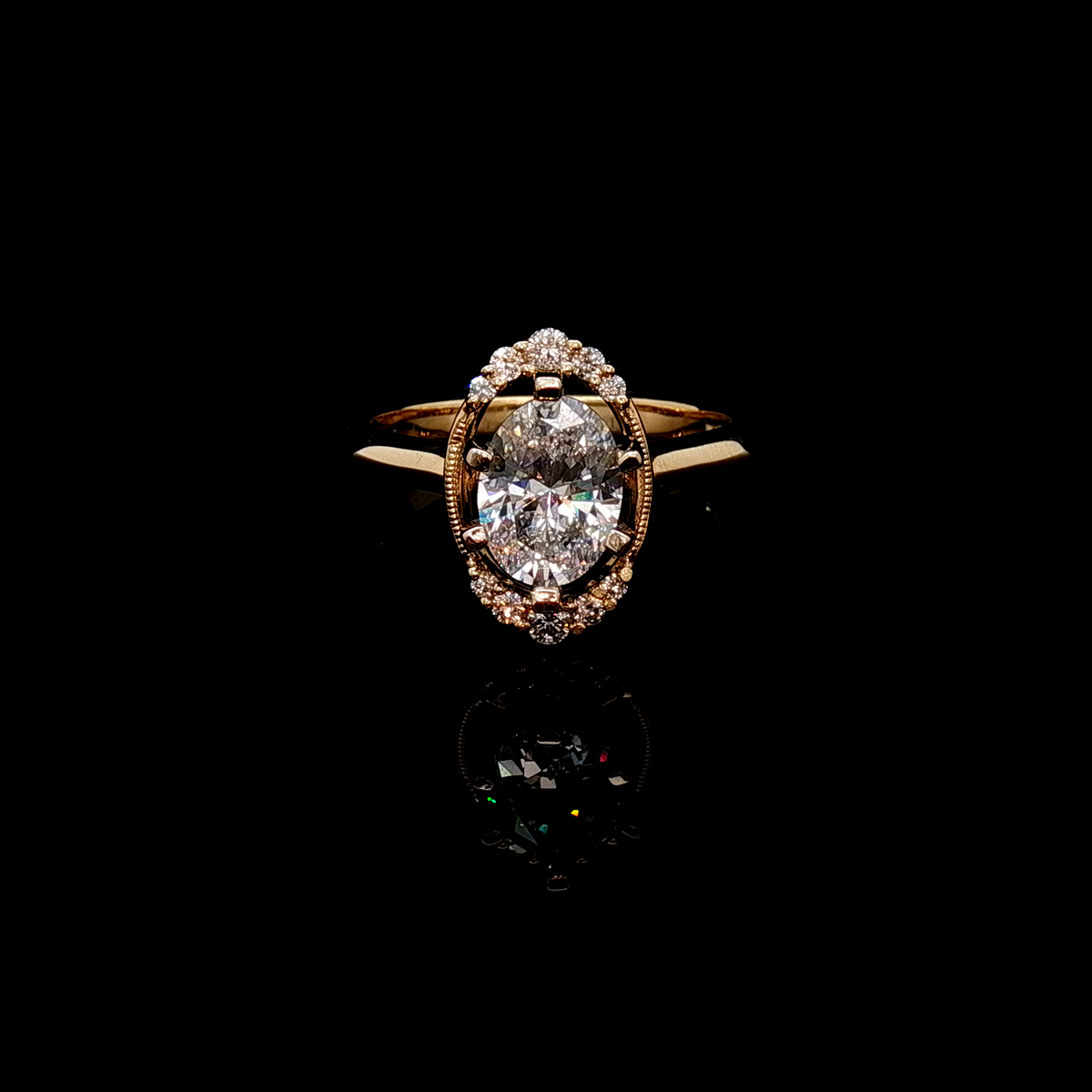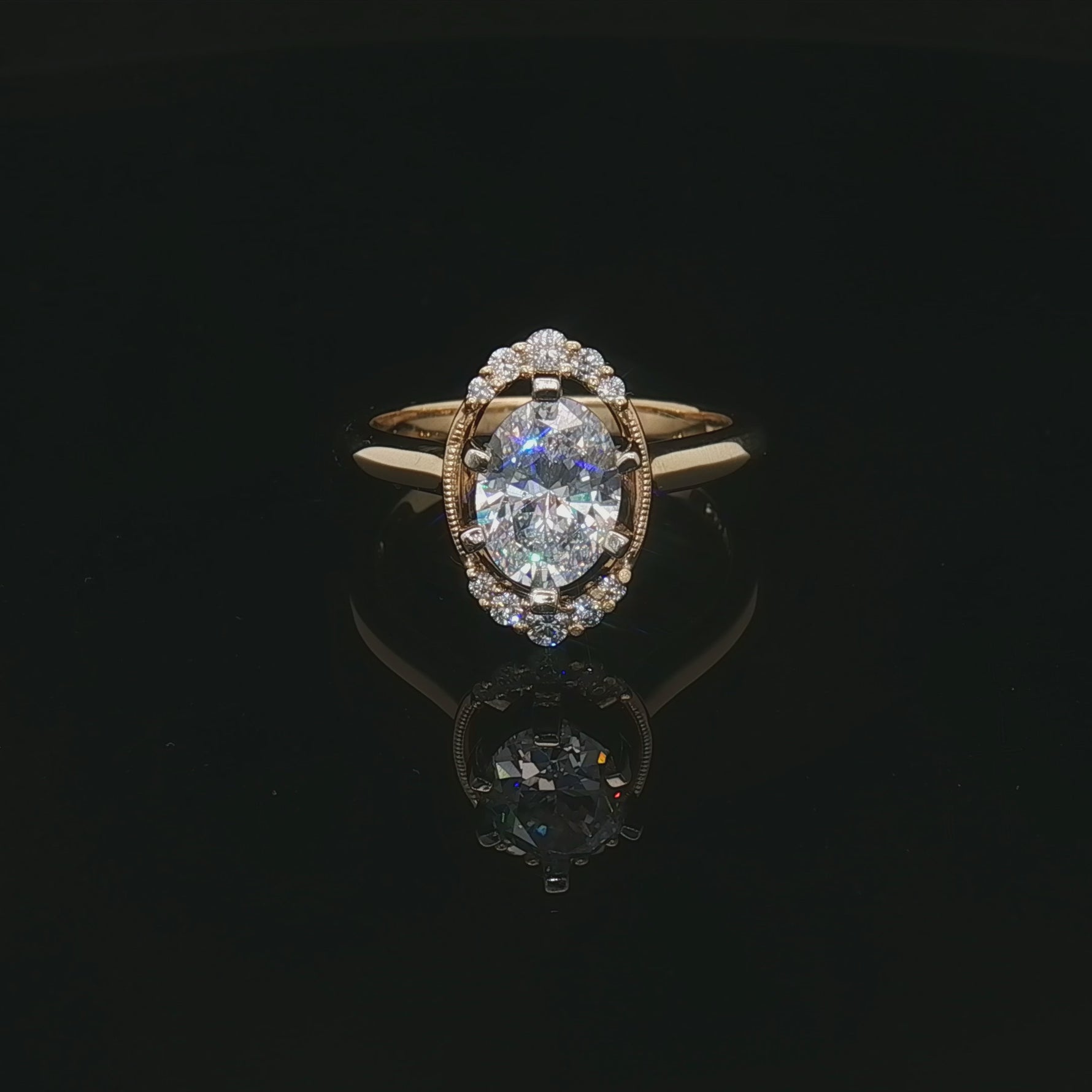 14k Yellow Gold Oval Stone Diamond and Milgrain Edging Halo Semi-Mount Engagement Ring CTW-0.14 Center Stone not Included