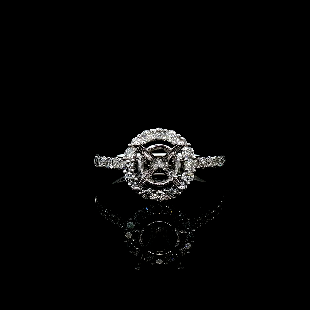 14k White Gold 0.50ctw Halo Diamond Semi-Mount Engagement Ring *Center Stone not Included