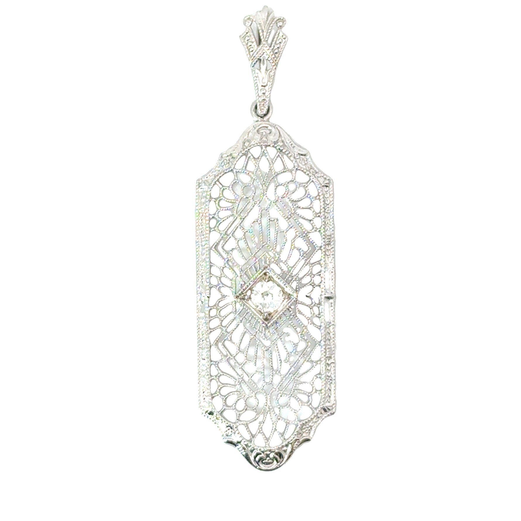 10k White Gold Art-Deco 0.10ct Diamond Estate Pendant