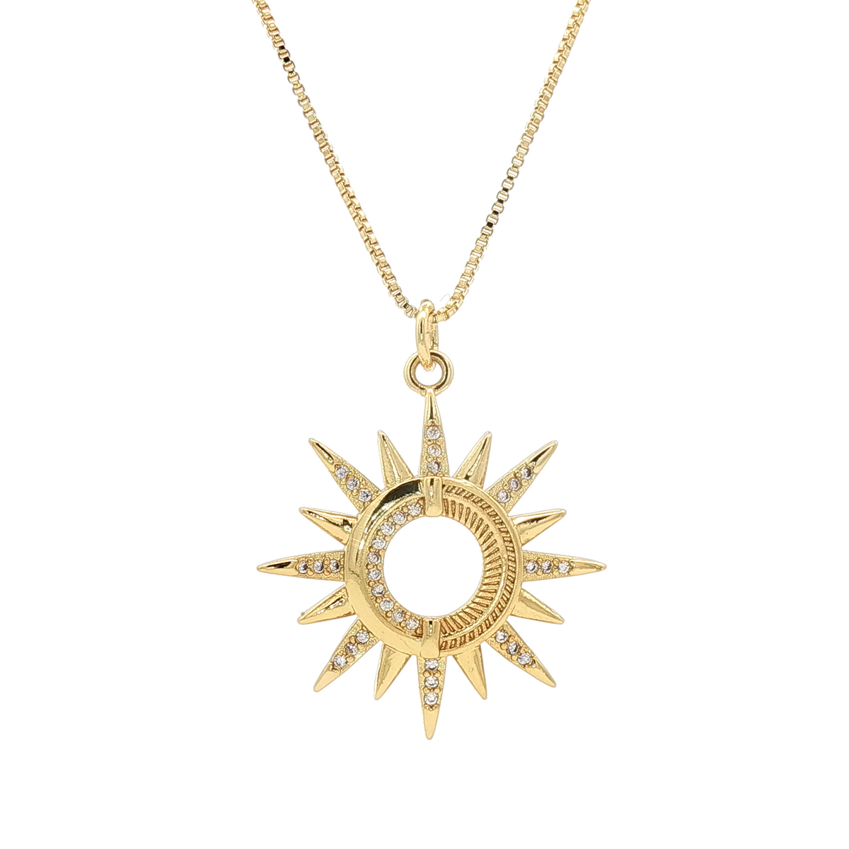 CZ Sun Charm Necklace on 0.8mm Gold-filled 18 inch Box Chain