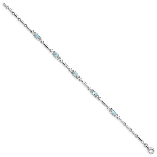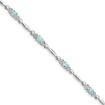 Sterling Silver Rhodium-plated Aquamarine and Diamond Bracelet Diamond Weight: 0.01 CT Gem Weight: 0.9 Length: 7 inch
