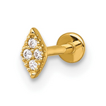 14k 18 Gauge Polished and Textured CZ Navette Labret Stud