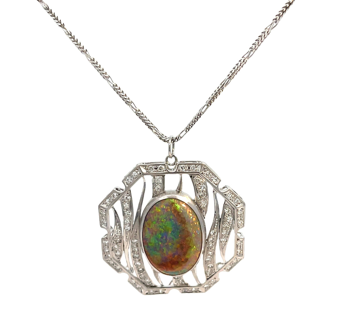 Platinum 8.00ct Opal and 1.00ct Diamond Pendant 10.80g *Chain sold separately #001-430-02275