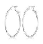 Sterling Silver Hoop Earrings, 35mm, Rhodium Plated