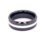Black Diamond Ceramic Beveled Edge Band with White Enamel Inlay Ring Width: 8mm Inlay Width: 2mm Finger Size: 10.5 Ring Metal: Black Diamond Ceramic Inlay Material: Enamel Finishes: Polish Description Black Diamond Ceramic is among the hardest materials known to man. It’s extremely scratch resistant, light weight and comfort fit.