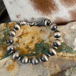 Sterling Silver Pearl Bracelet – 10mm & 4mm. This hand-strung bracelet combines bold 10mm hand-polished sterling silver pearls with delicate 4mm pearls for a striking contrast in size. A timeless design that can be worn solo or stacked for a layered look. Length: 7.5" Materials: Sterling silver pearls Pearl Sizes: 10mm & 4mm