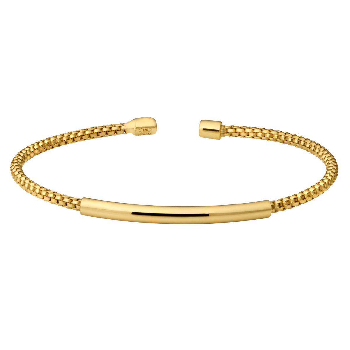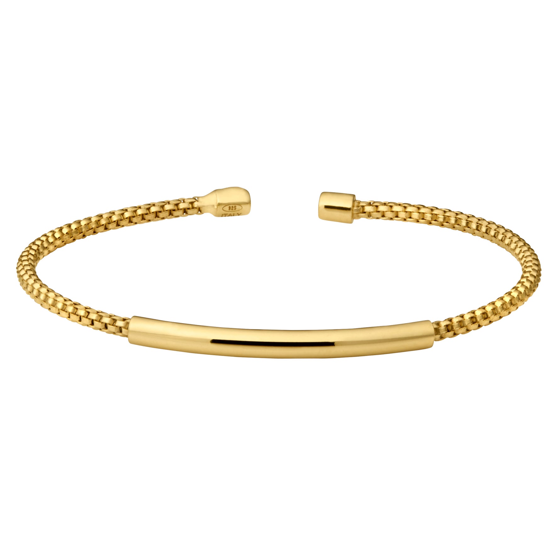 Gold Finish Sterling Silver Rounded Box Link Cuff Bracelet with High Polished Bar