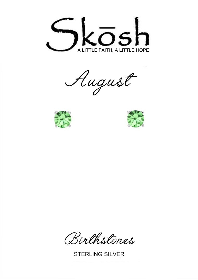 Sterling Silver 4mm Birthstone Stud Earrings- August