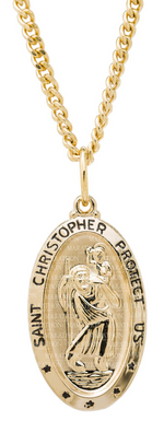 14k Gold Filled St. Christopher Oval Pendant with 20" Yellow Tone Stainless Chain