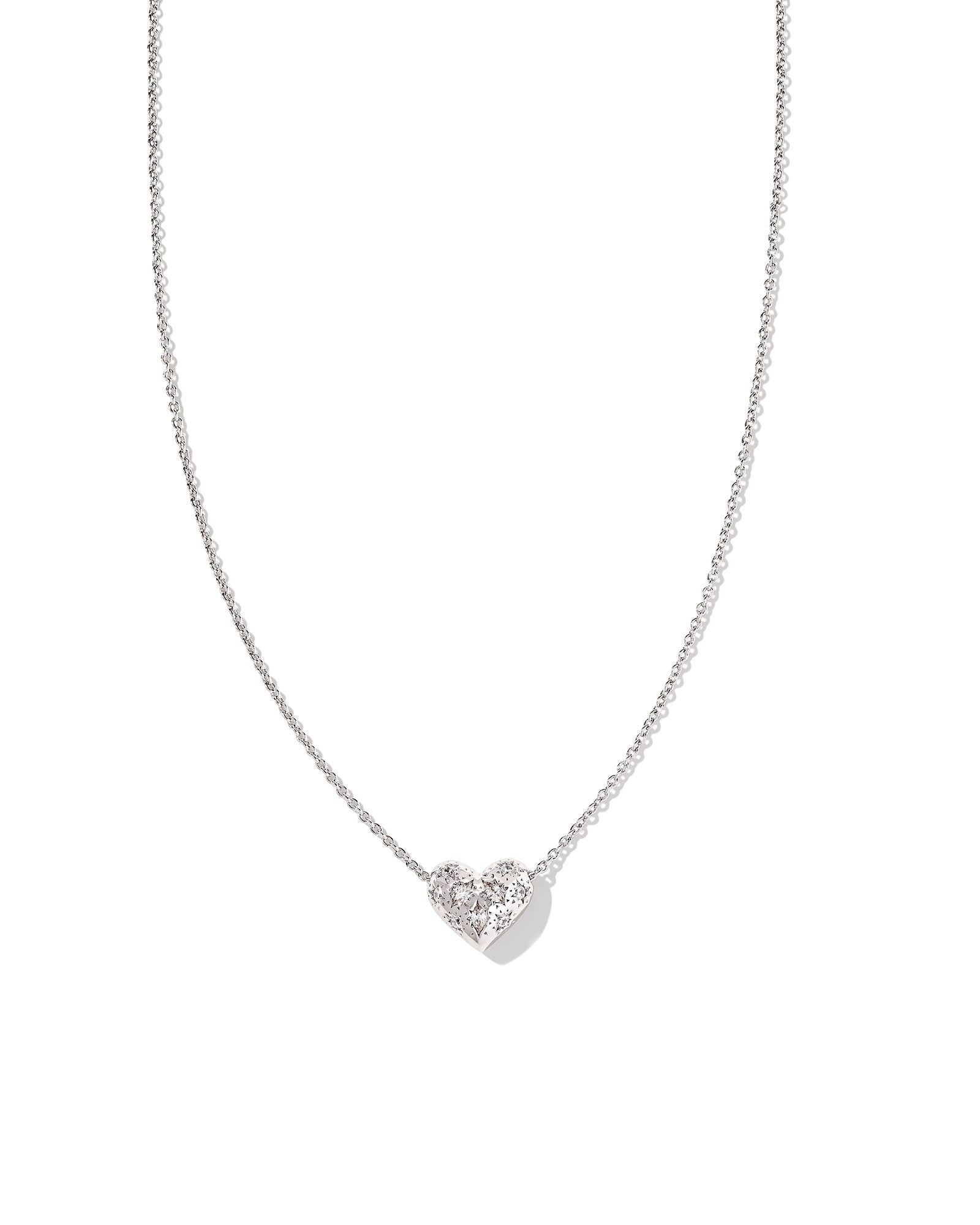 Kendra Scott Holland Heart Necklace Silver White Crystal