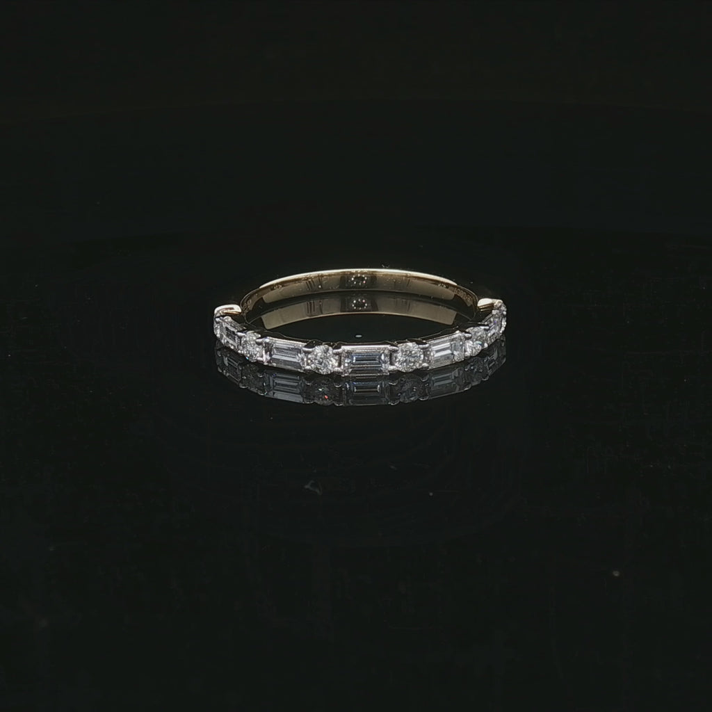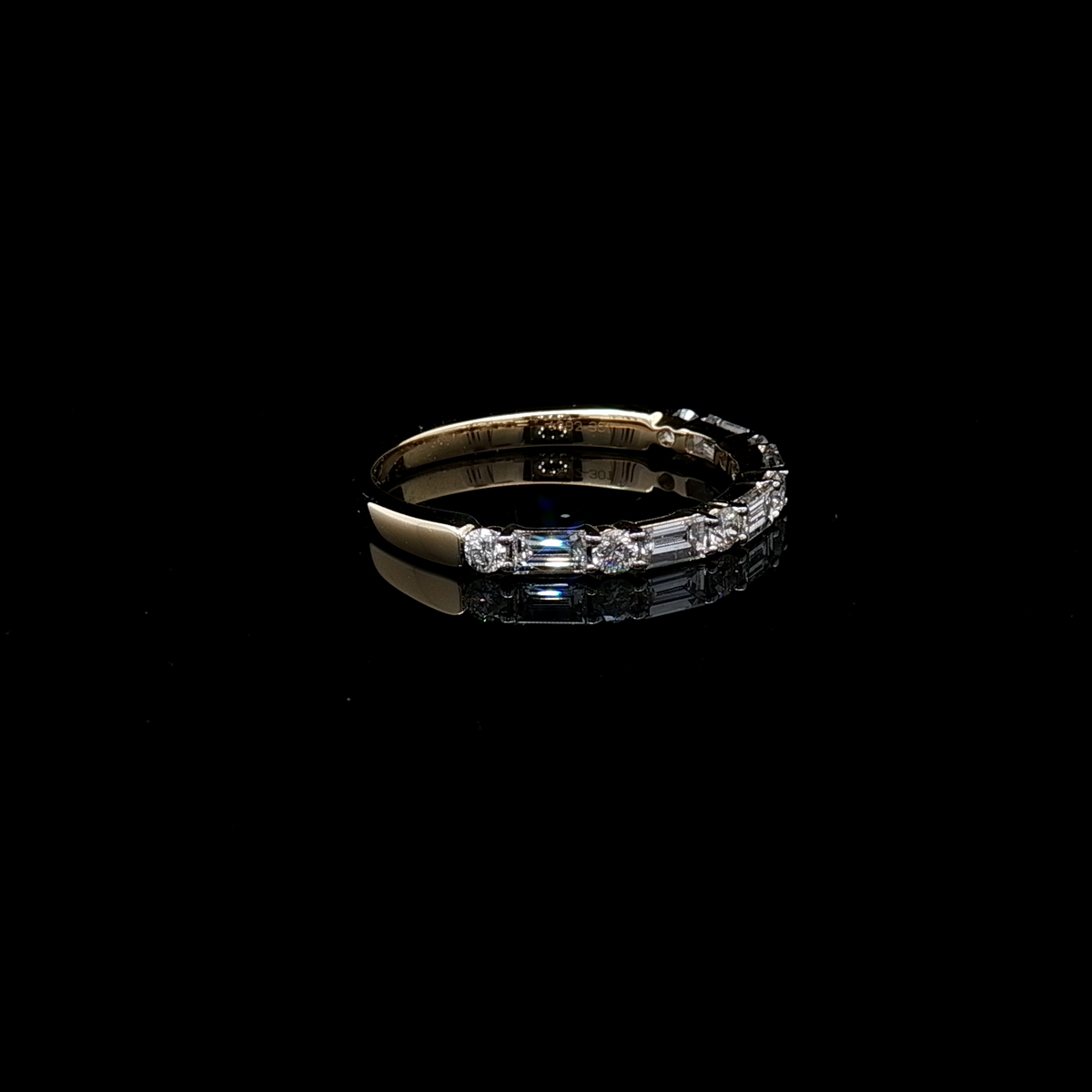 14K Yellow Gold Baguette and Round 0.77ctw Diamond Straight Wedding Band