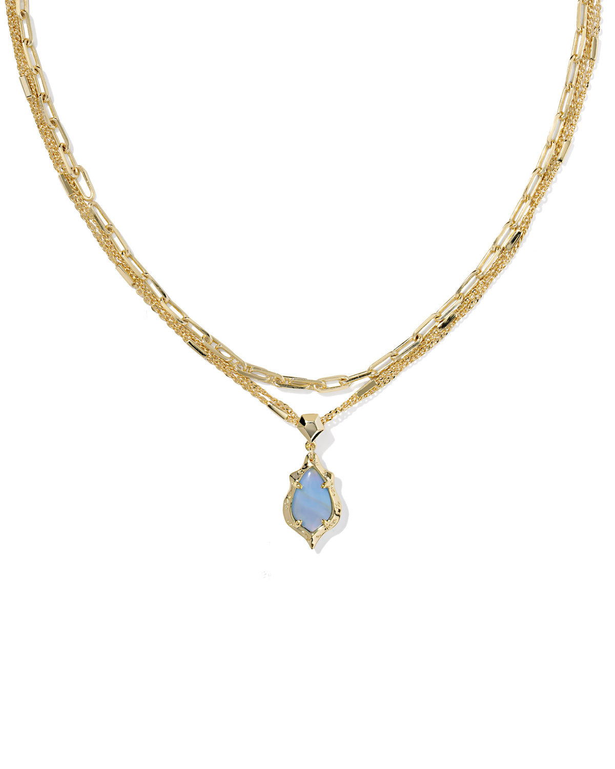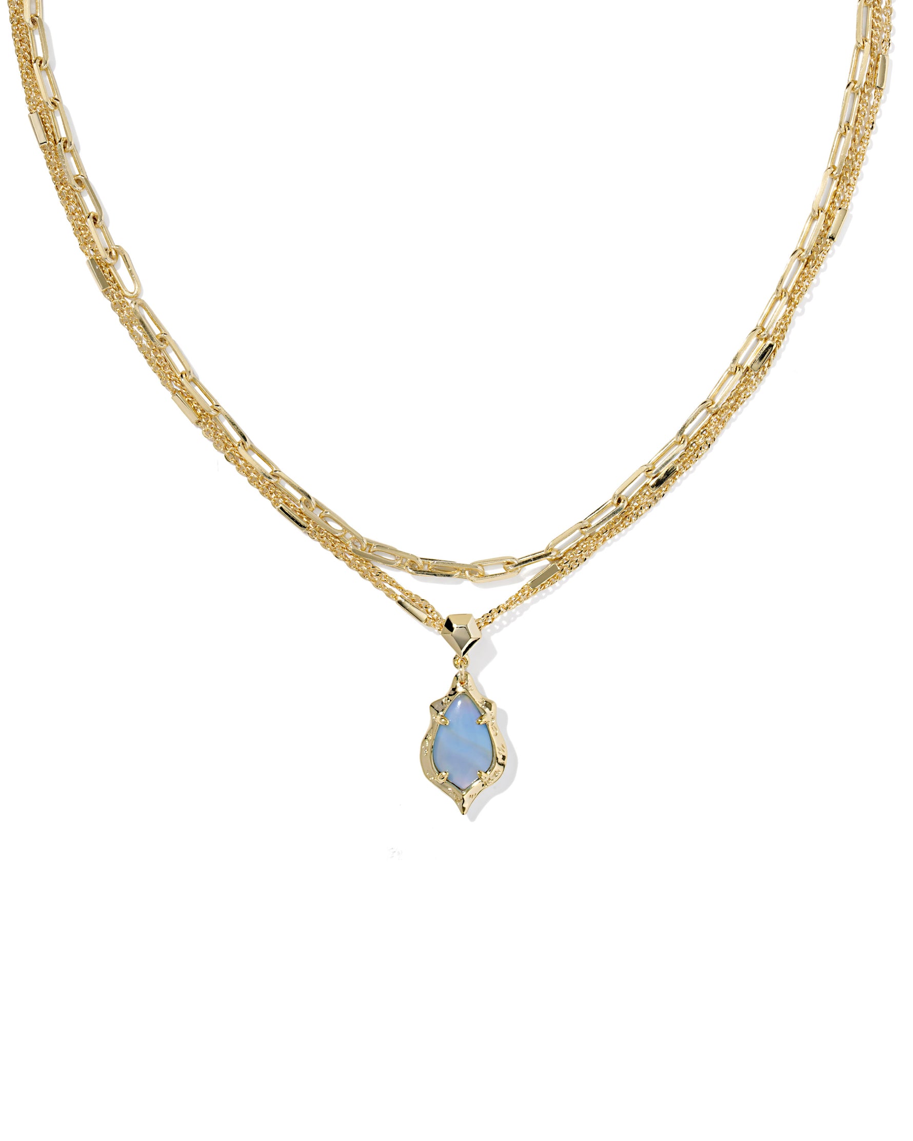 Kendra Scott Adriana Scallop Frame Multi Strand Necklace Gold Sky Blue Iridescent Abalone