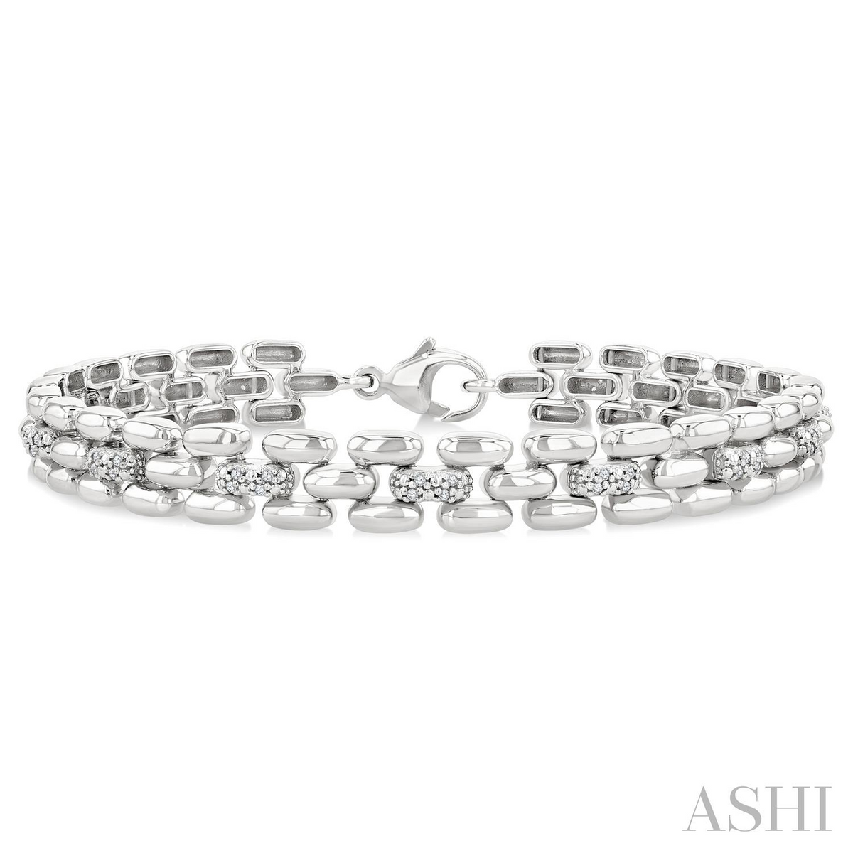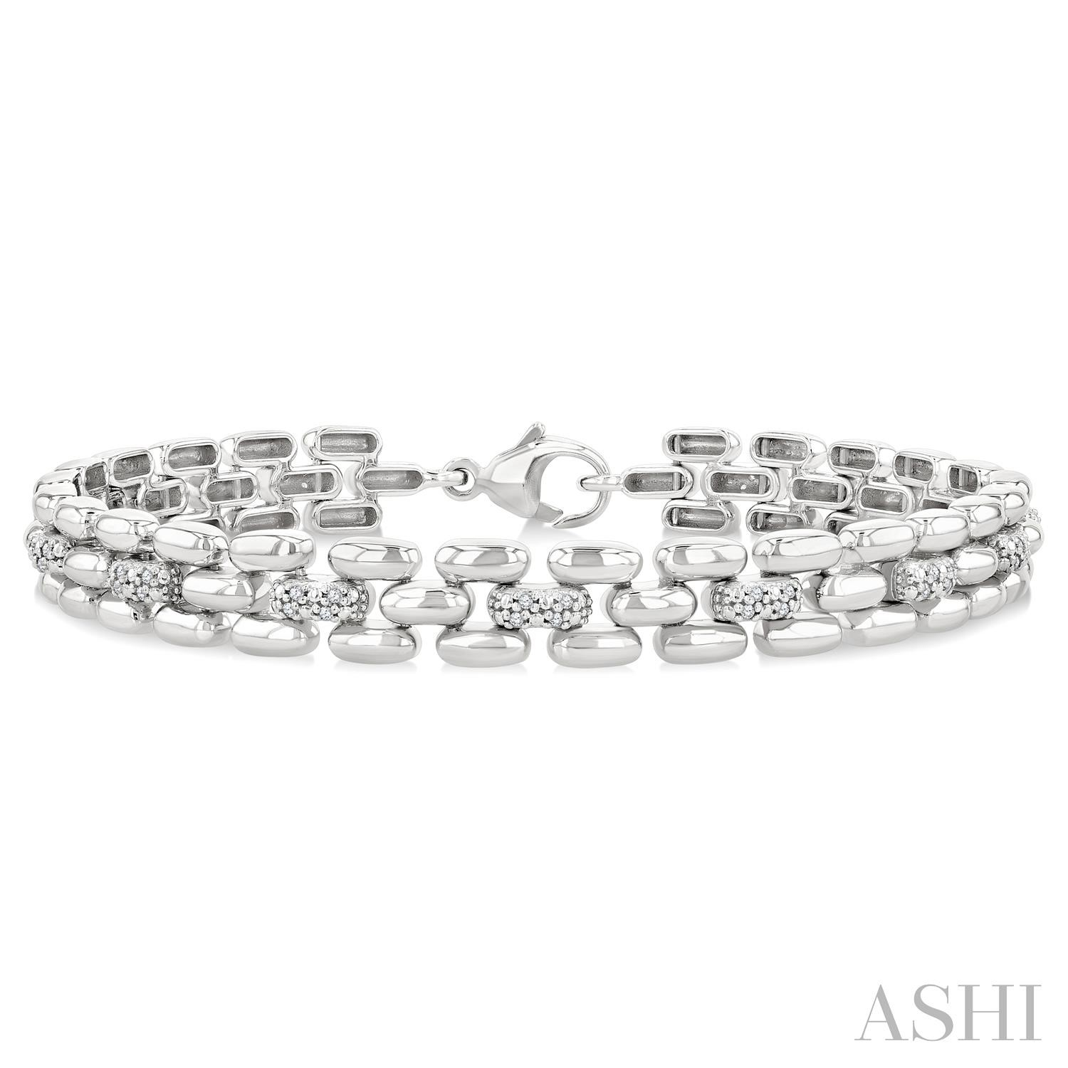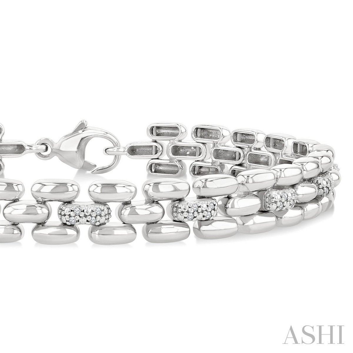 Sterling Silver 1/6 Ctw Bold Panther Link Single Cut Diamond Fashion Bracelet