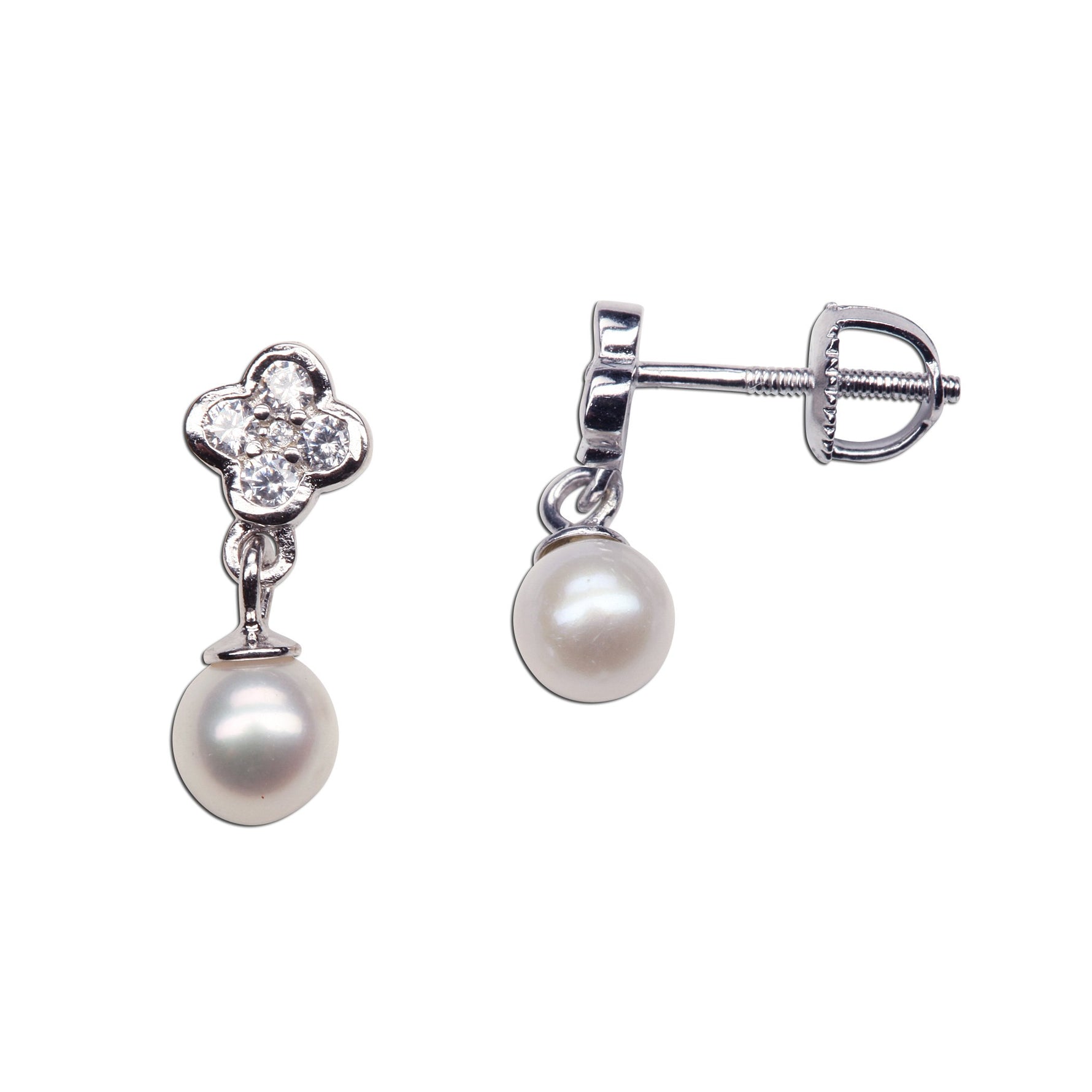 Sterling Silver Daisy with Dangling Pearl Earrings