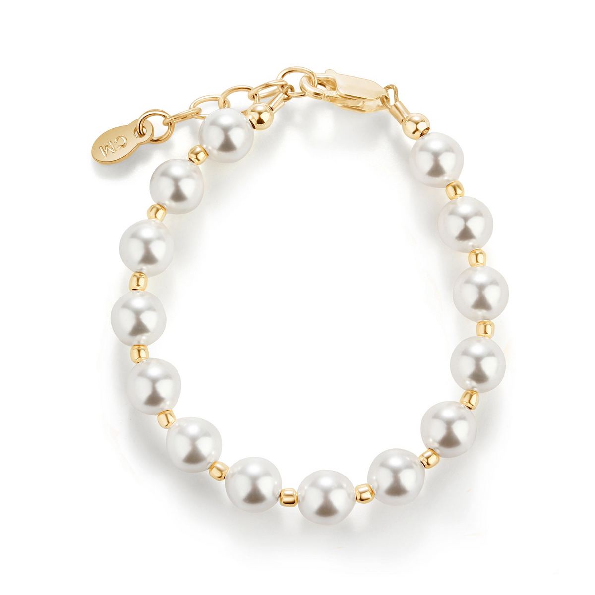 14k Gold Plated Sterling Silver Pearl and Gold Beaded Bracelet- Medium