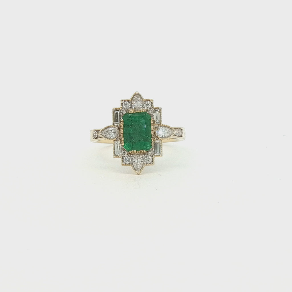 14K Yellow Gold Emerald and 1.94 ctw Diamond Ring