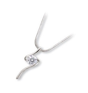 Sterling Silver Swirl Design CZ Solitaire Necklace