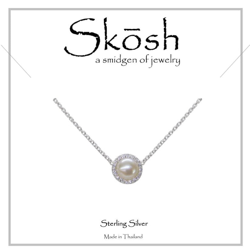 Skosh Sterling Silver 6mm Freshwater Pearl with CZ Halo Necklace